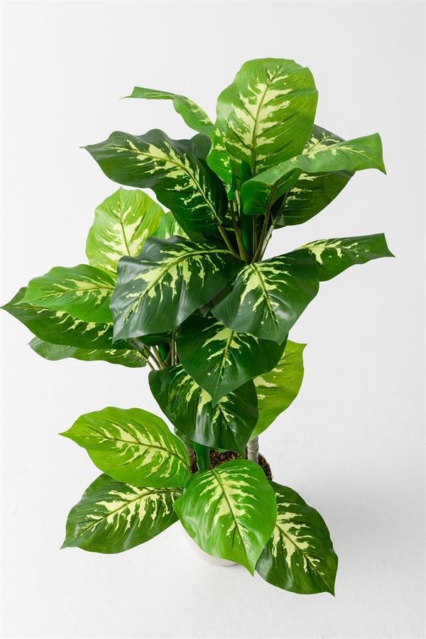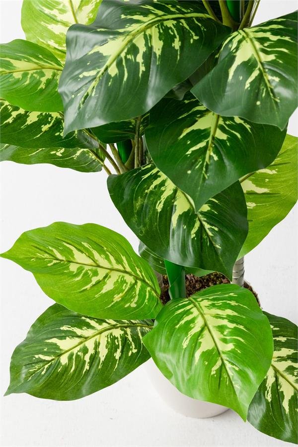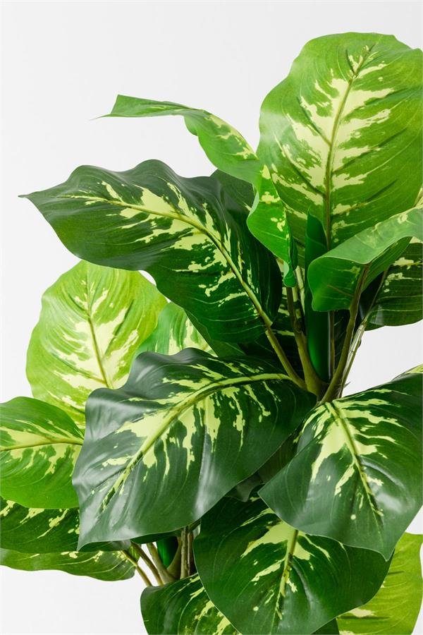 Her bir gövdesiyle gerçek Difenbahya bitkisini andıran bu yapay çiçek, doğal görünümü ve yaprak detaylarıyla dikkat çeker. Yaprakları, gerçek Difenbahya yapraklarına benzer bir şekil ve renkte tasarlanmıştır, böylece çiçeğin gerçekçi bir görünüm sergilemesini sağlar.
