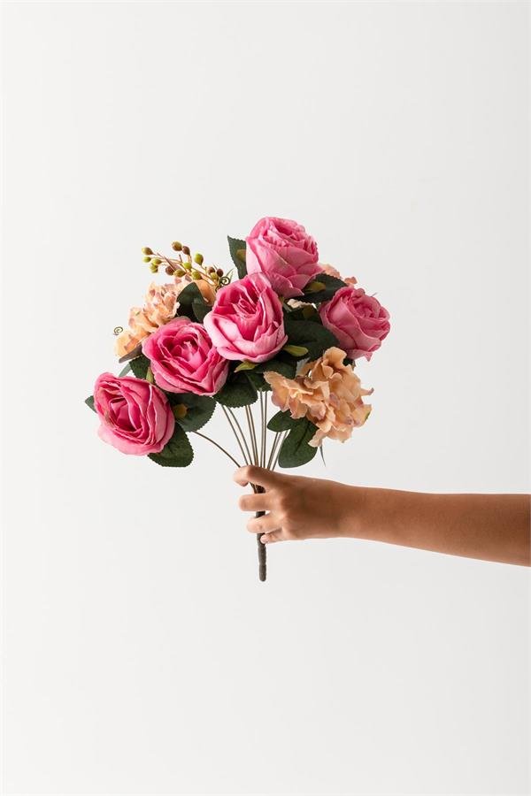 Yapay Gül Demeti Açık Pembe 9 Dallı