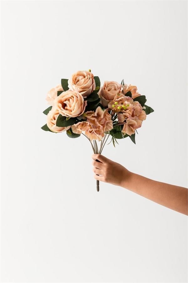 Yapay Gelin Eli Demeti 35 Cm 8 Dal Krem