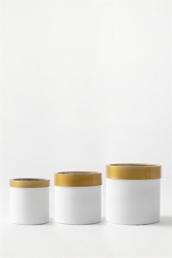 Metal Saksı Krem Gold Bilezikli 3’lü Set