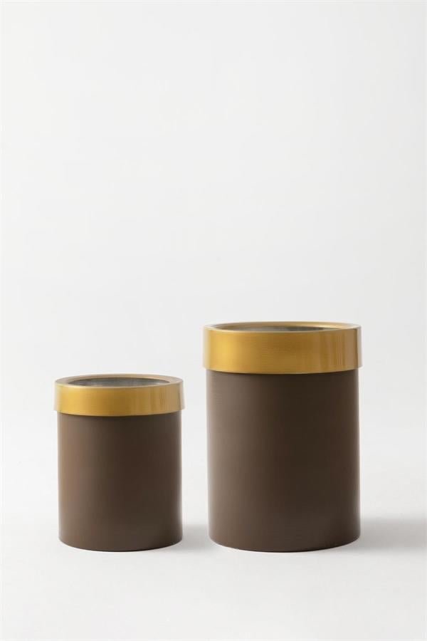 Metal Saksı Kahverengi Gold Bilezikli 2’li Set