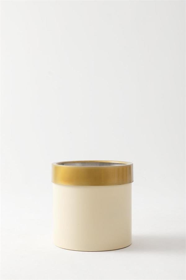 Metal Saksı Krem Gold Bilezikli 2’li Set