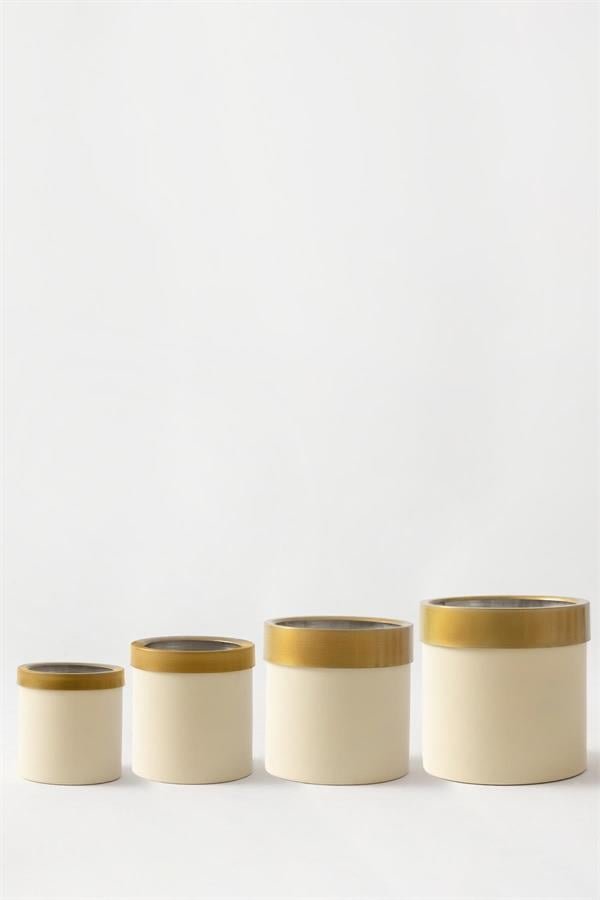 Metal Saksı Krem Gold Bilezikli 4’lü Set