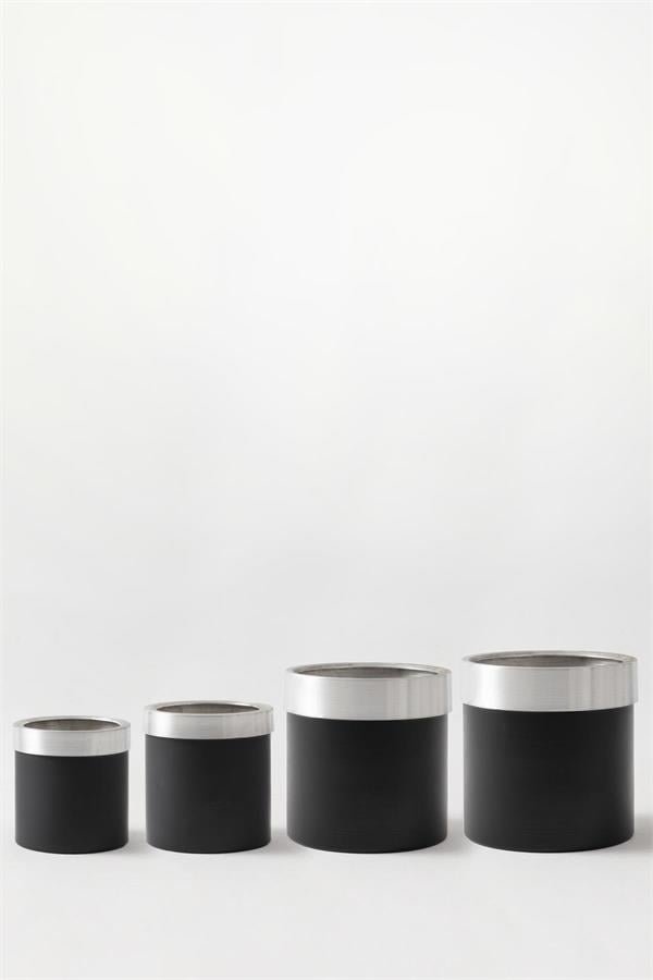 Metal Saksı Siyah Gümüş Bilezikli 4’lü Set