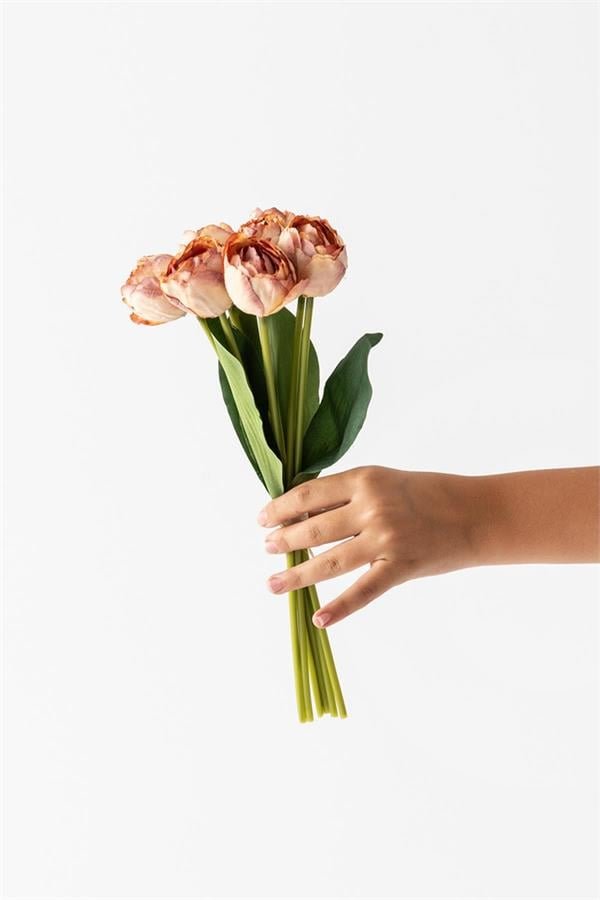 Yapay 10’lu Islak Lale Buketi Gerçeksi Doku Beyaz