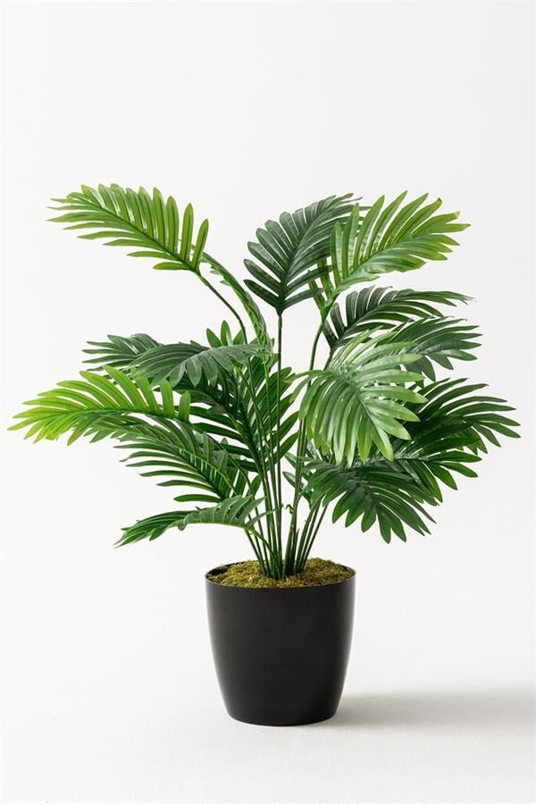 Yapay Çiçek Yelpaze Palmiye 8 Dal 50*35cm Salon Çiçeği Plastik Siyah Saksılı Yapay Bitki
