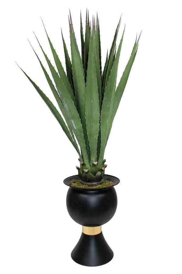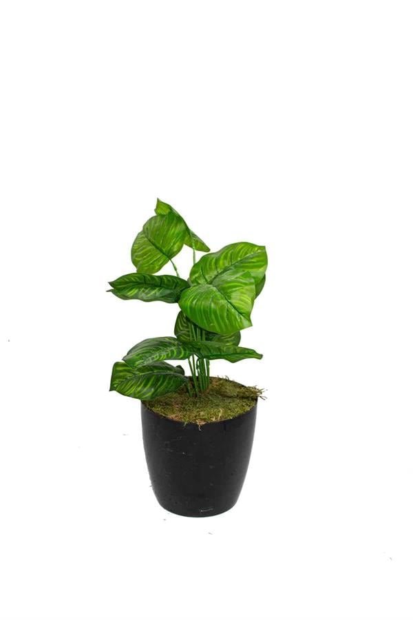 Yapay Çiçek Yelpaze Palmiye 8 Dal 50*35cm Salon Çiçeği Plastik Siyah Saksılı Yapay Bitki
