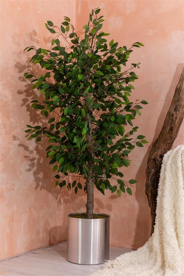 Bakım gerektirmeyen yapay Benjamin ağacı, su veya güneş ışığına ihtiyaç duymadan yıl boyunca canlı ve taze bir görünüm sunar. Sadece ara sıra hafif bir temizlik yaparak tozunu alabilirsiniz. Bu şekilde ağacın doğal güzelliğini koruyabilir ve uzun süre kullanabilirsiniz.