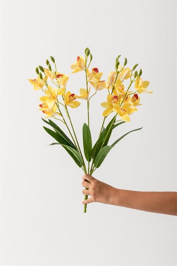 Yapay Islak Orkide Çiçeği Sarı 5 Dal