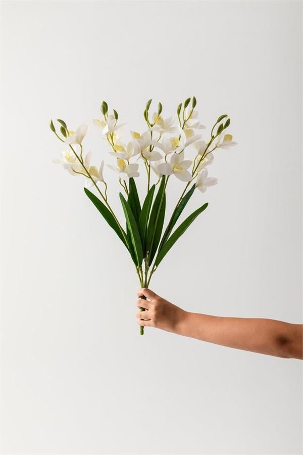 Yapay Islak Orkide Çiçeği Beyaz 5 Dal