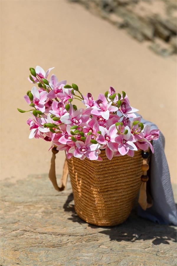 Yapay Islak Orkide Çiçeği Pembe 5 Dal