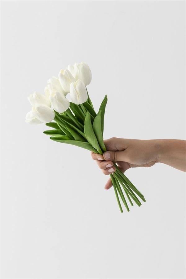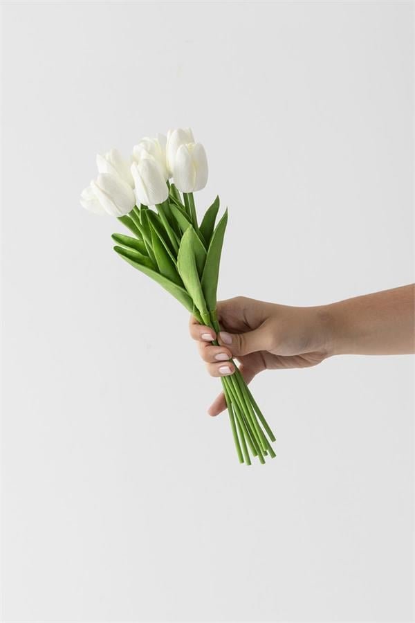 Yapay 10’lu Islak Lale Buketi Gerçeksi Doku Beyaz