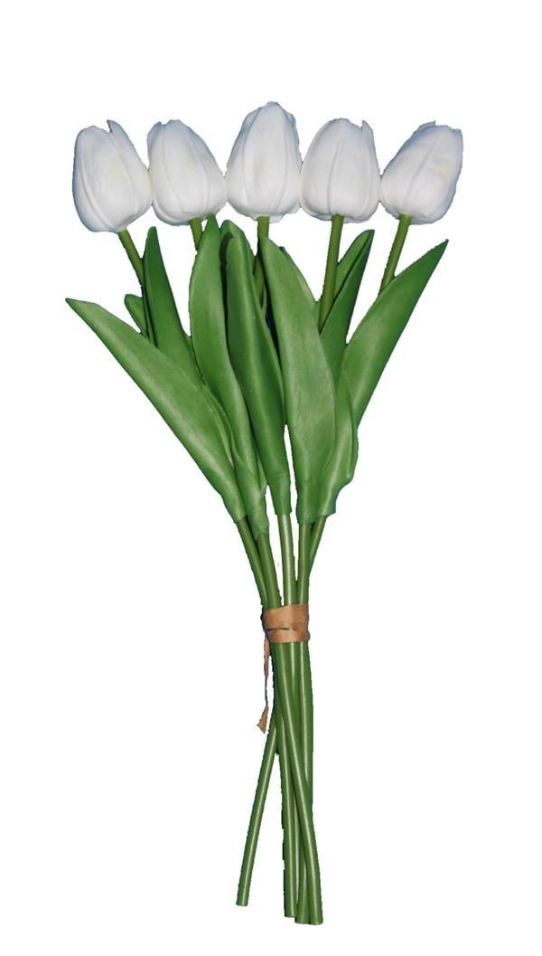 Yapay 5’li Islak Lale Buketi Gerçeksi Doku Beyaz