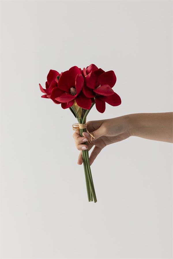 Yapay Lüx Lateks Manolya Demeti 33cm Kırmızı 7 Kafa