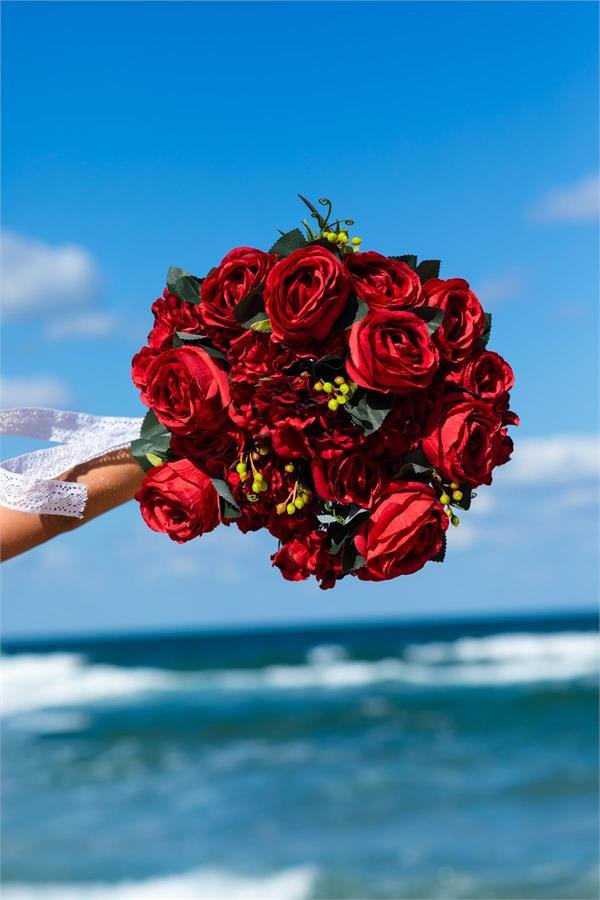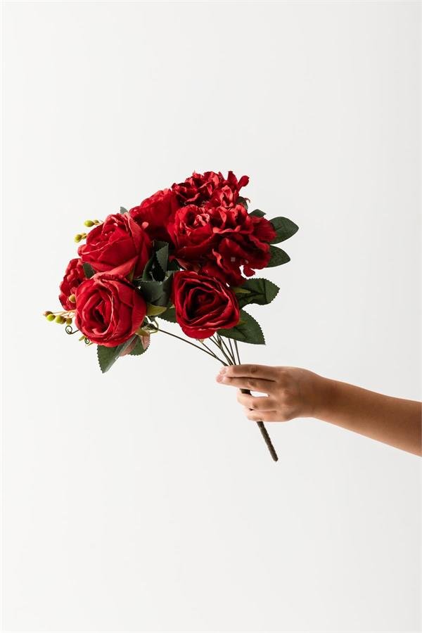 Yapay Kırmızı Gül 30 Cm 5 Dal